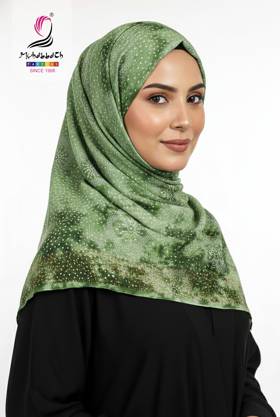 Muhabbath Fancy Leaf Printed Chiffon Shawl - Green