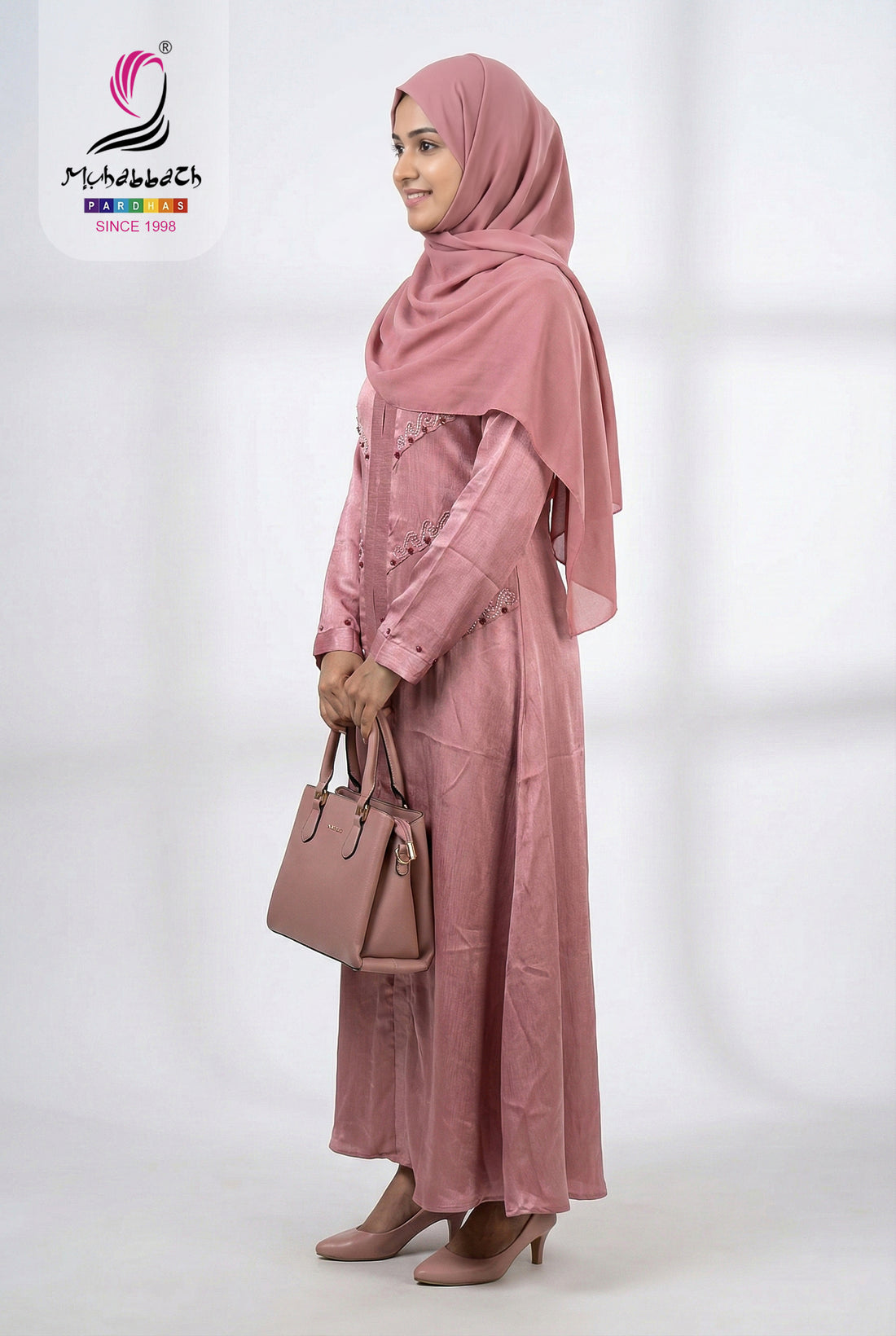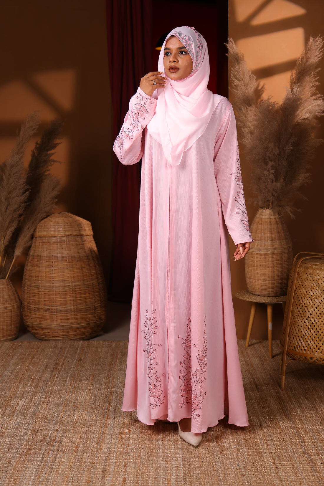 Zoom Shining Handwork Abaya – Rosewood Pink