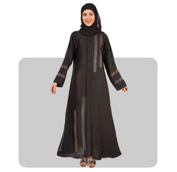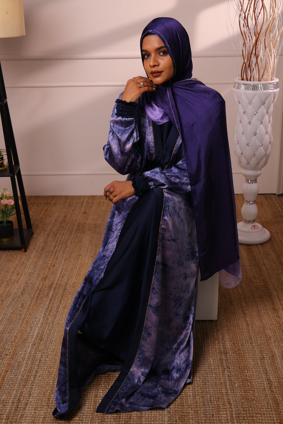 Zoom Glitter Stone Chain Design Abaya – Navy Mix
